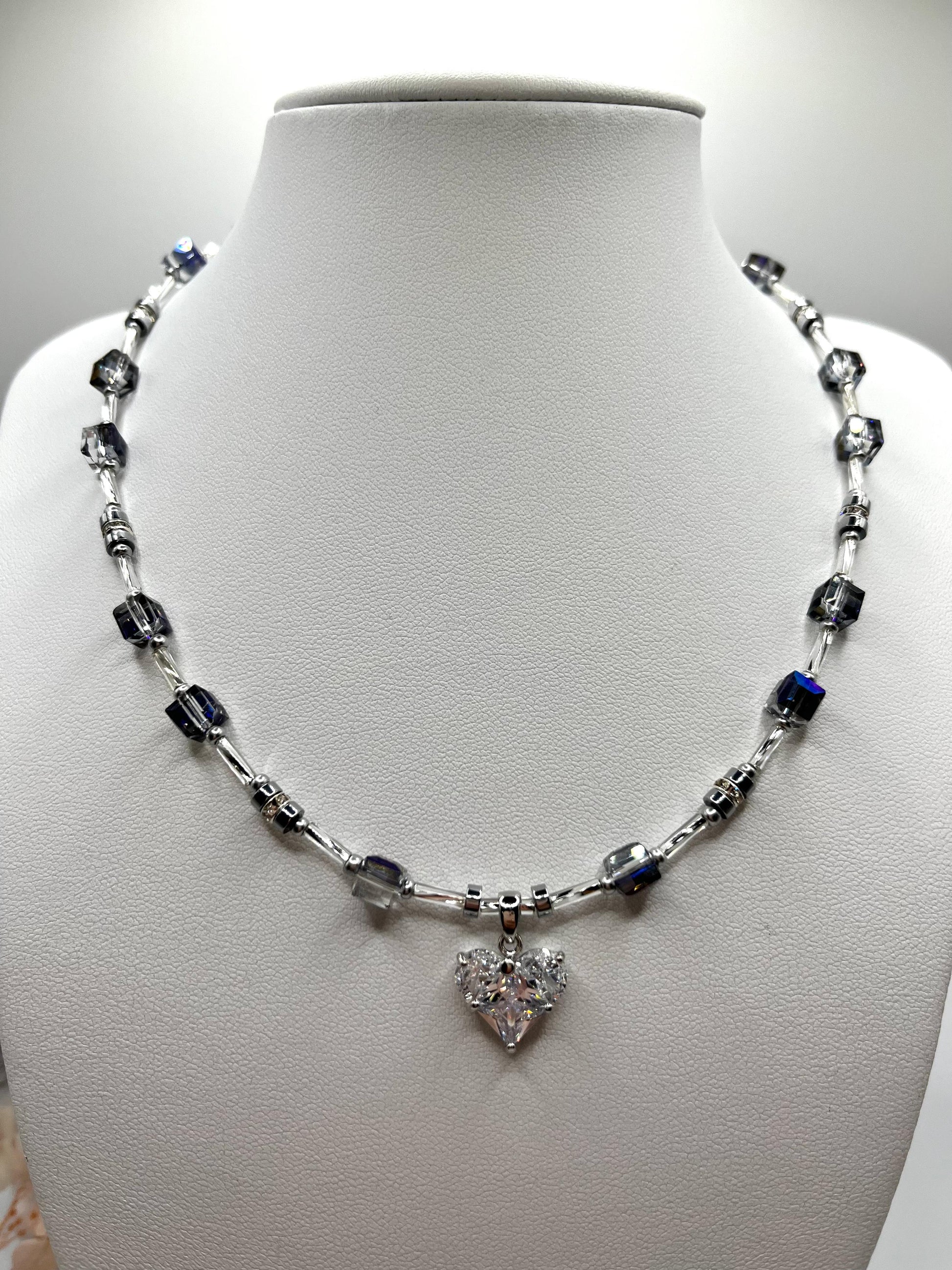 Aurelia, wunderschöne Kette mit grauen Glasperlen und Herz-Anhänger