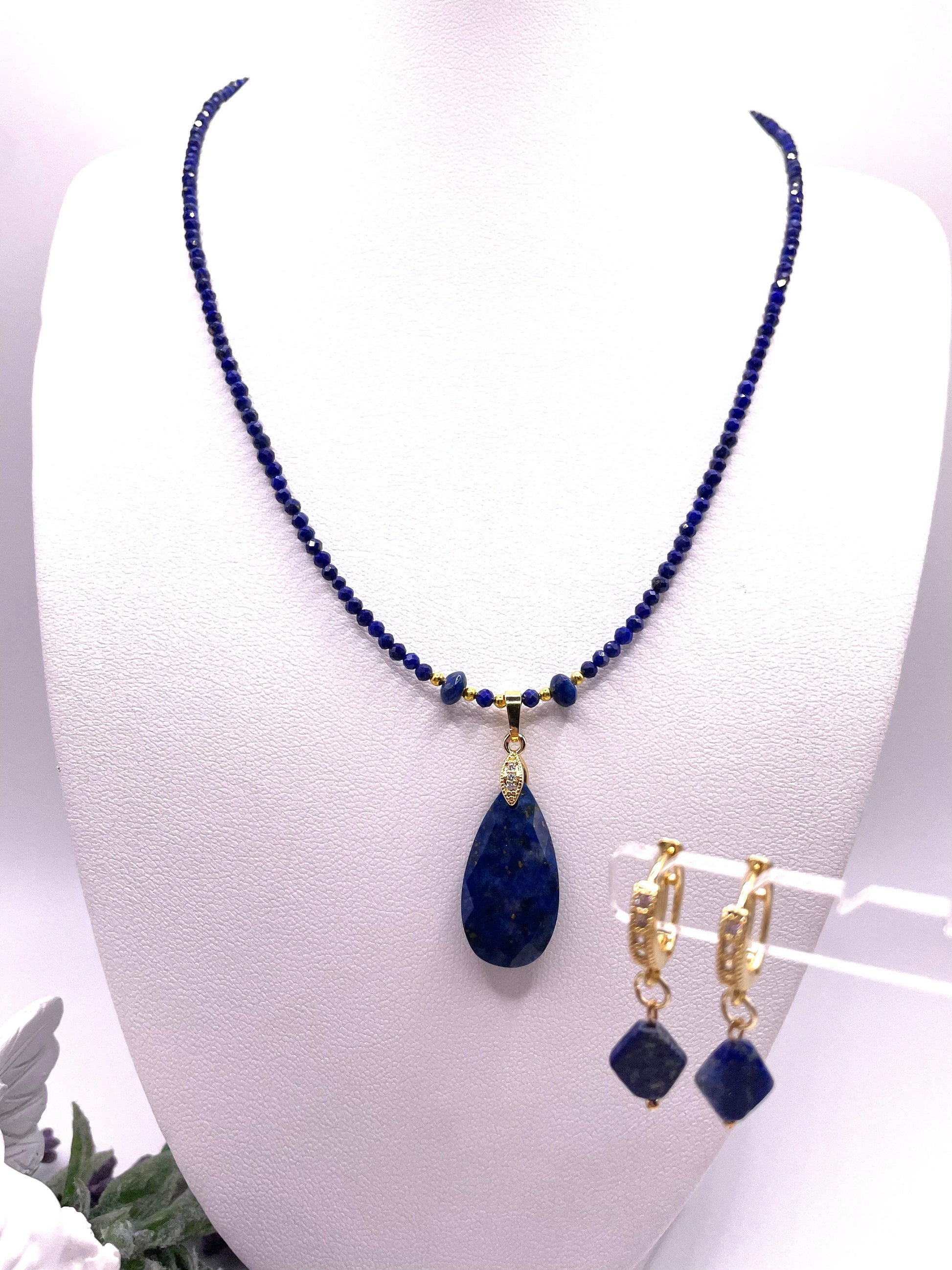 Lapislazuli, Schmuck-Set, Kette, Ohrringe