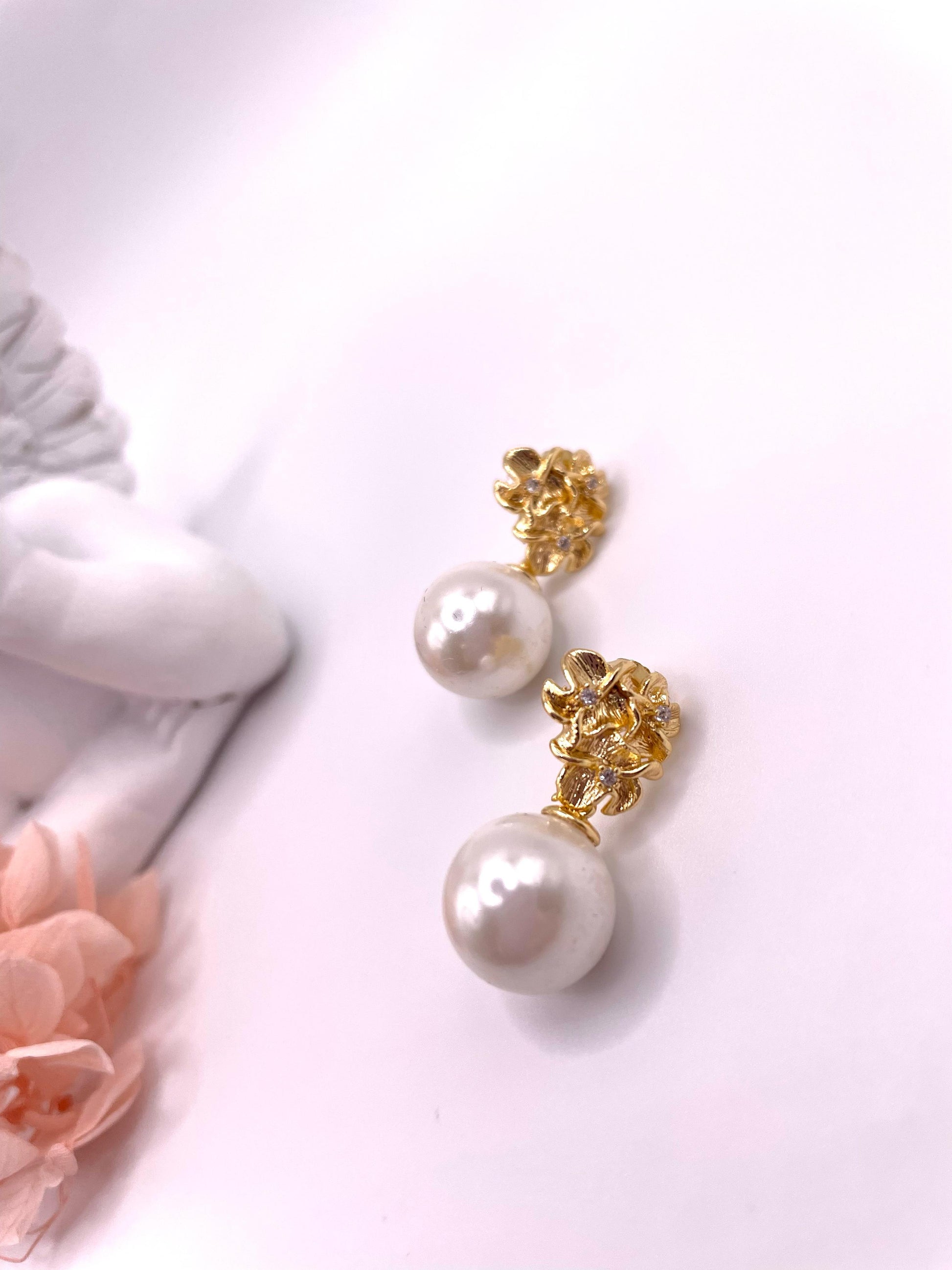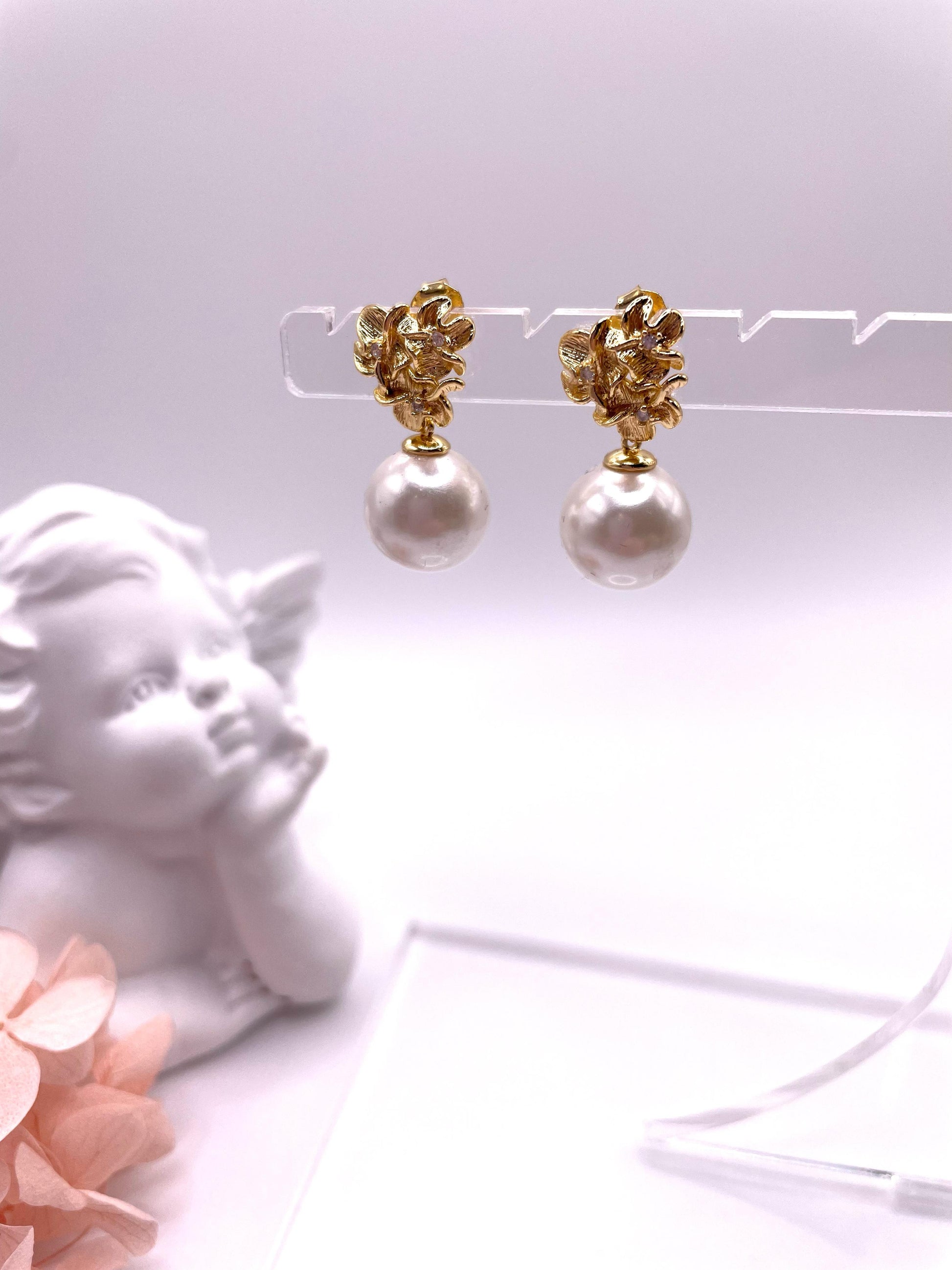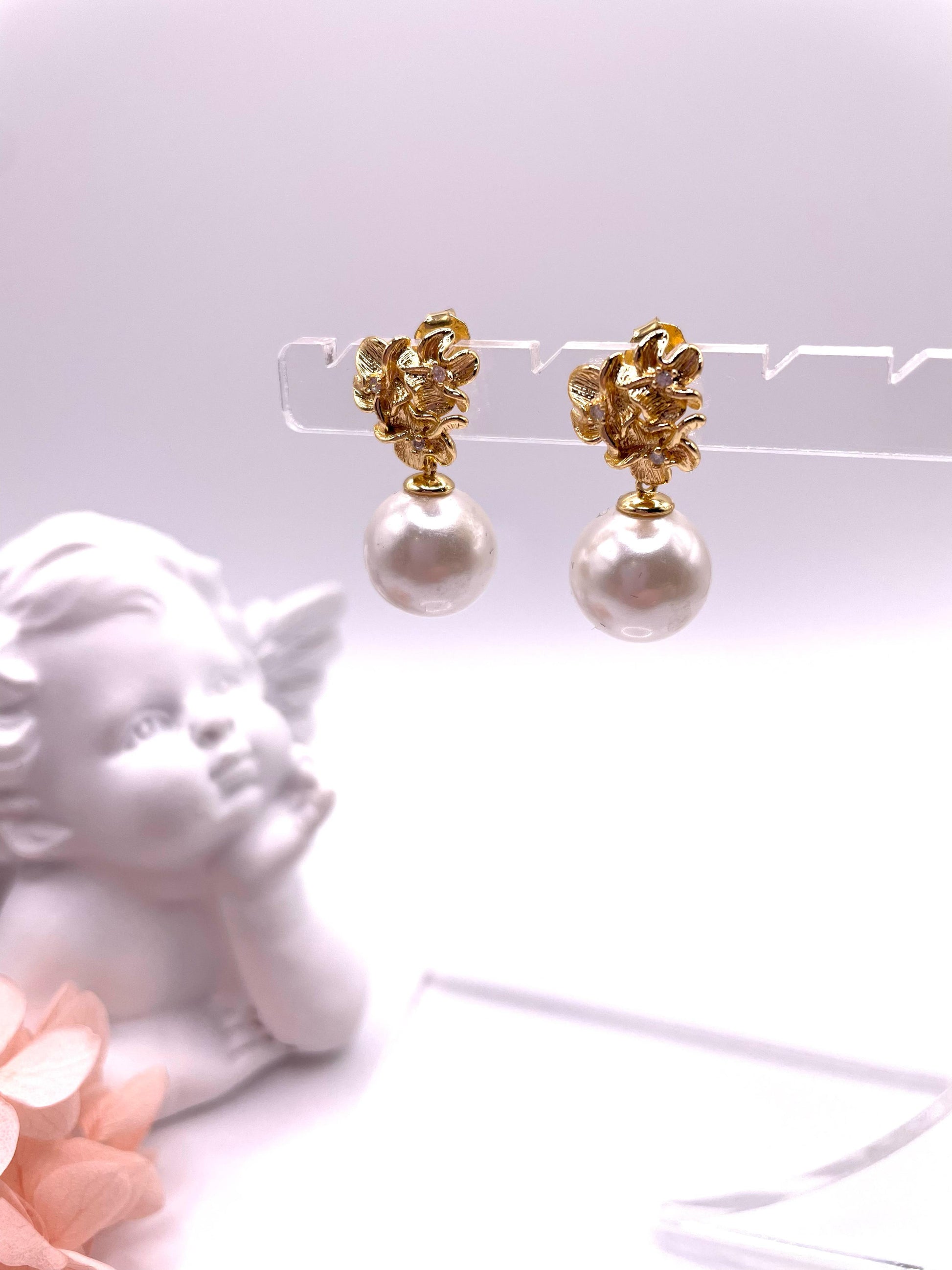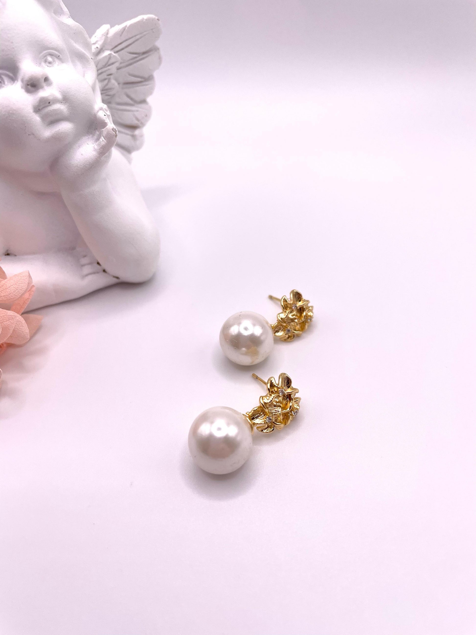 Ohrstecker mit Muschelperlen, vergoldet mit Zirkonia