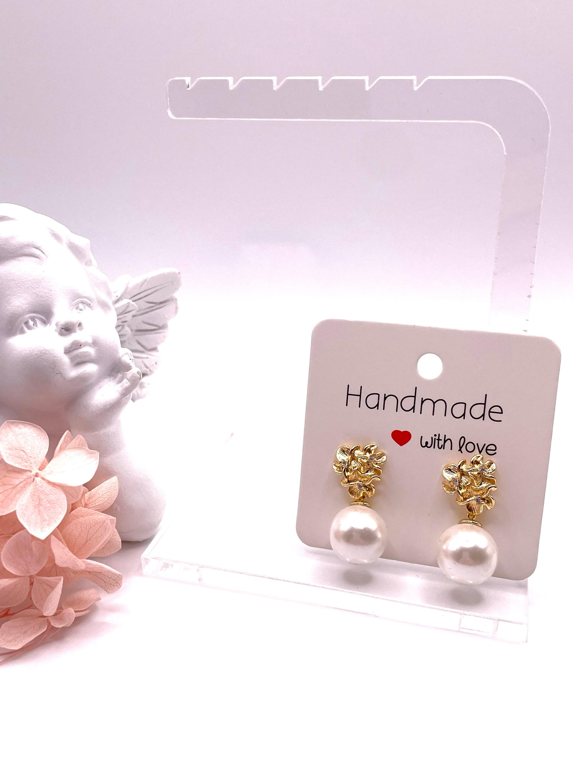 Länge der Ohrringe circa 2,5 cm. Die Perlen haben einen Durchmesser von ca. 12 mm.