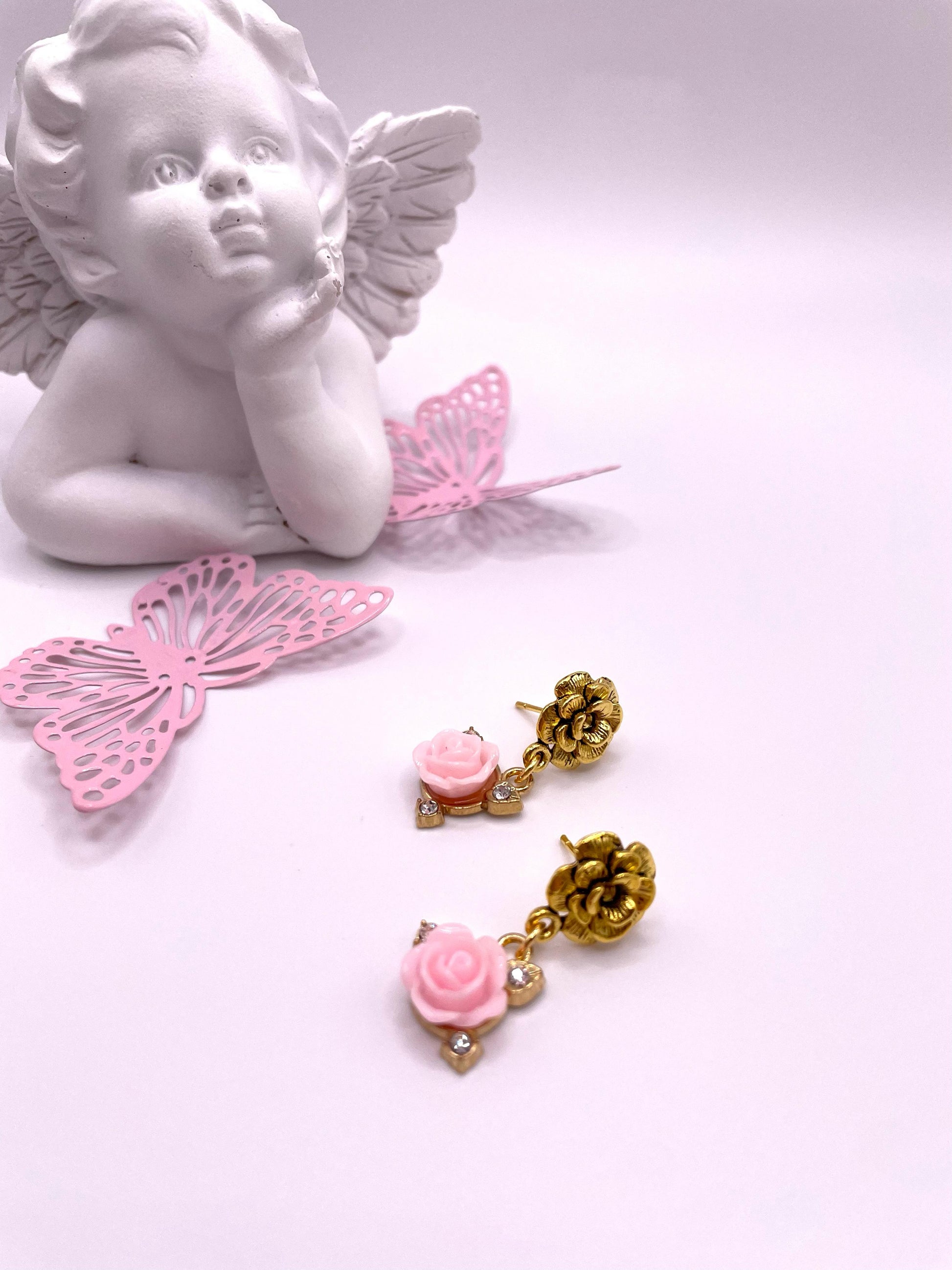 Länge der Ohrringe circa 2,8 cm. Die Rosen haben einen Durchmesser von ca. 10 mm.