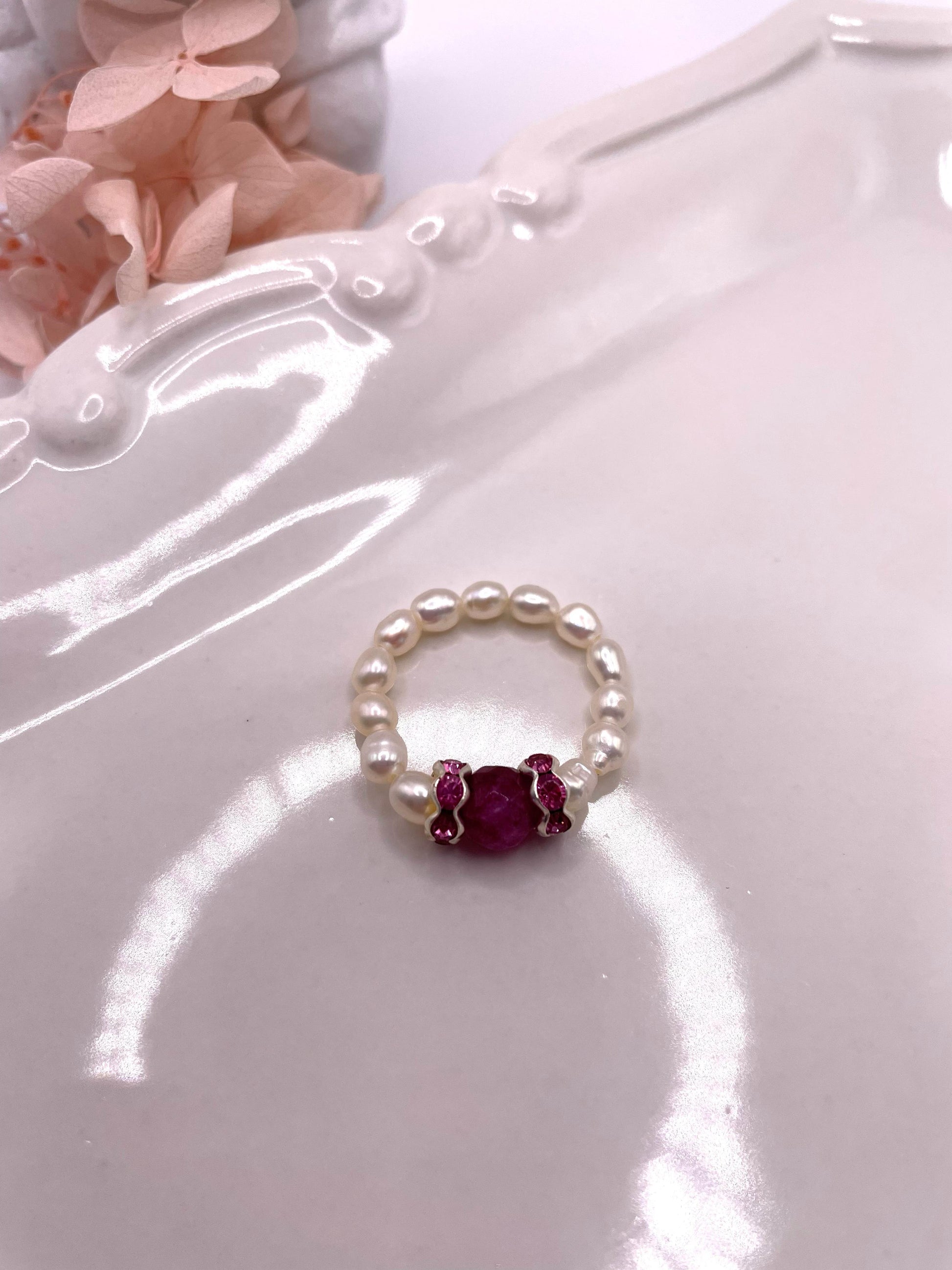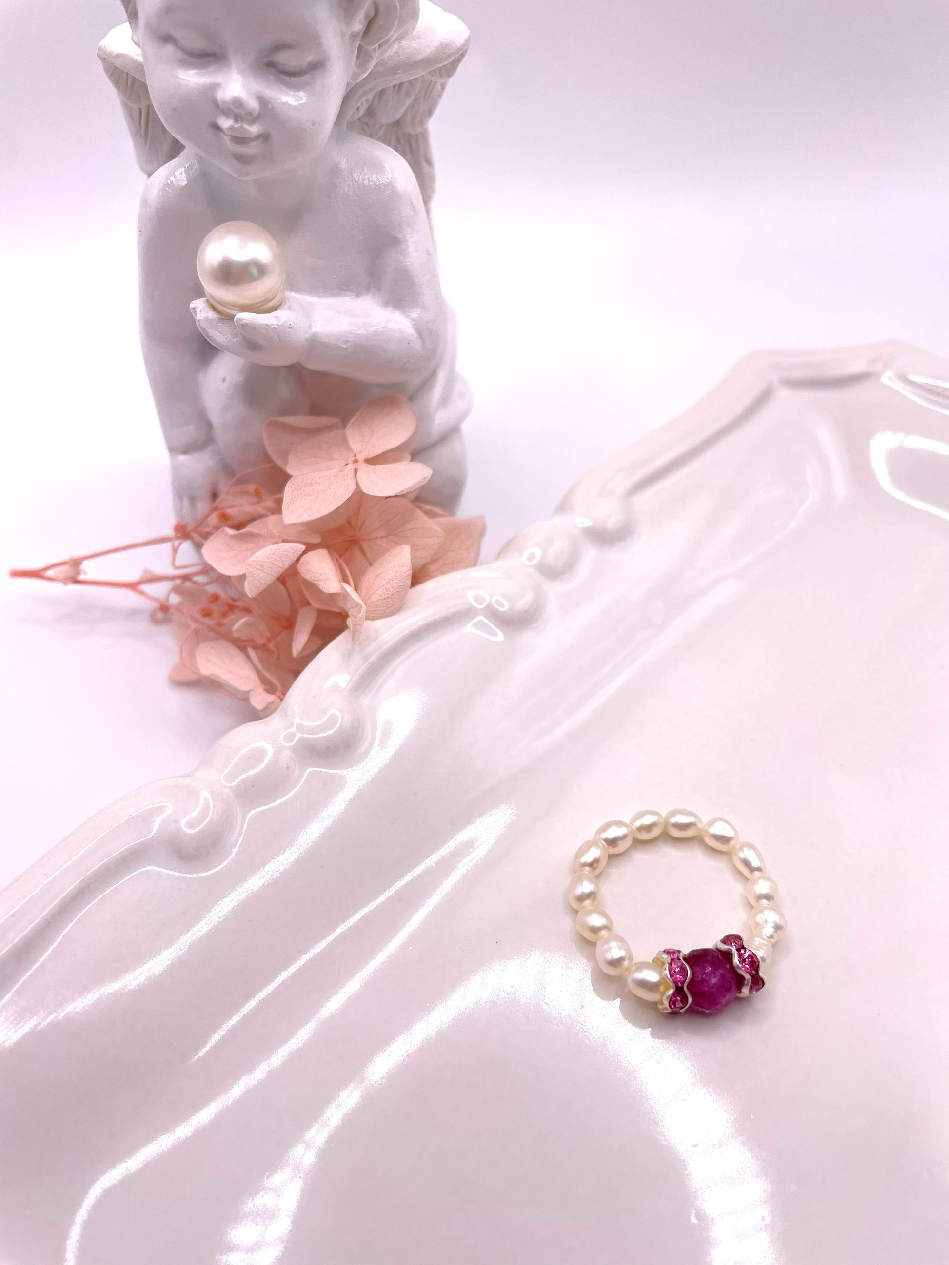 Roter Turmalin, auch Rubellit genannt, steht für Lebensfreude, Herzenswärme und emotionale Stärke. Er unterstützt dabei, Liebe anzunehmen und auszustrahlen. Die Süßwasserperlen schenken dem Ring eine harmonisierende Energie und symbolisieren Reinheit und weibliche Intuition.