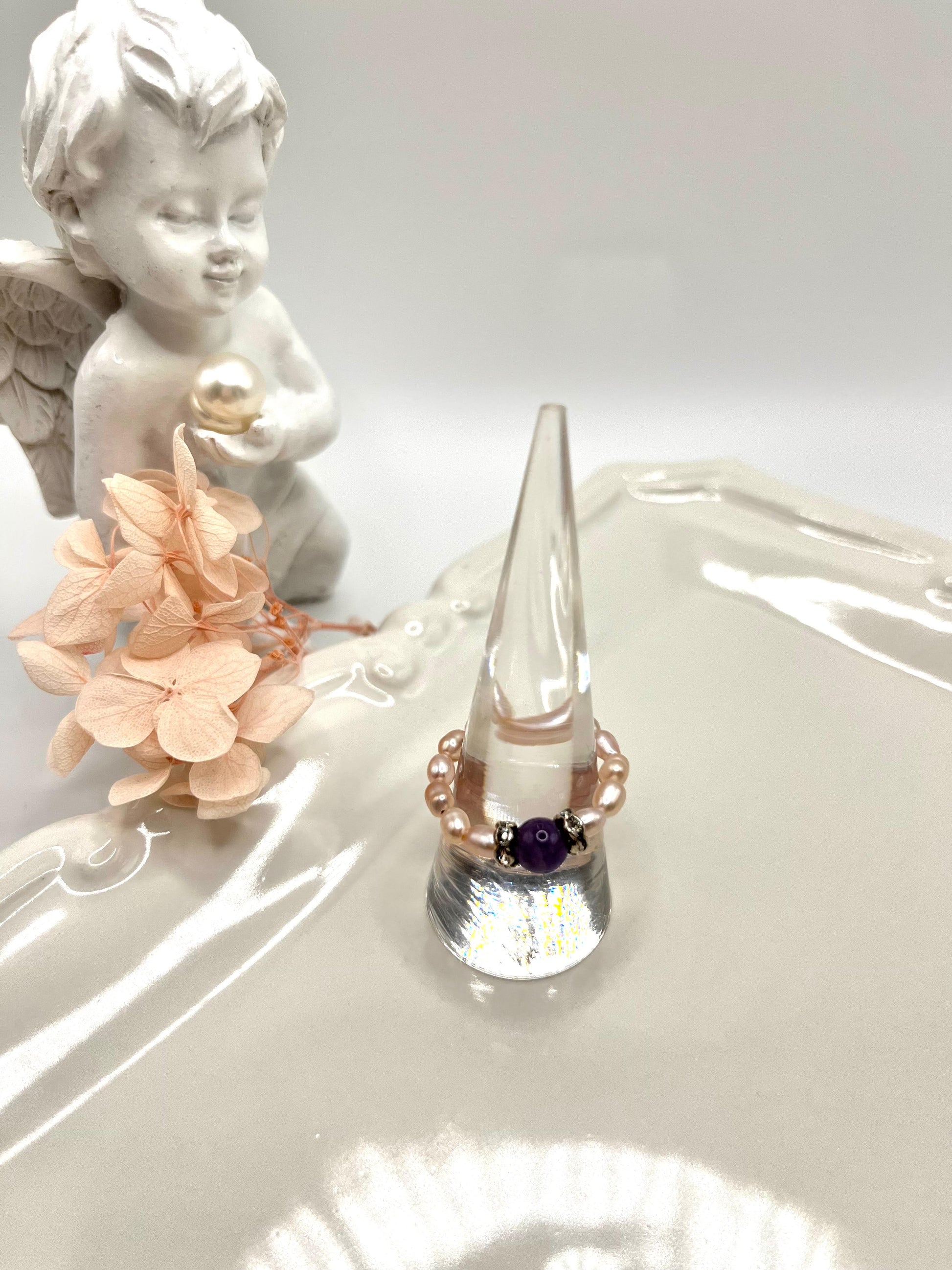Zart eingefasst in feine Perlen entsteht ein farbenfroher Ring mit natürlicher Eleganz.
