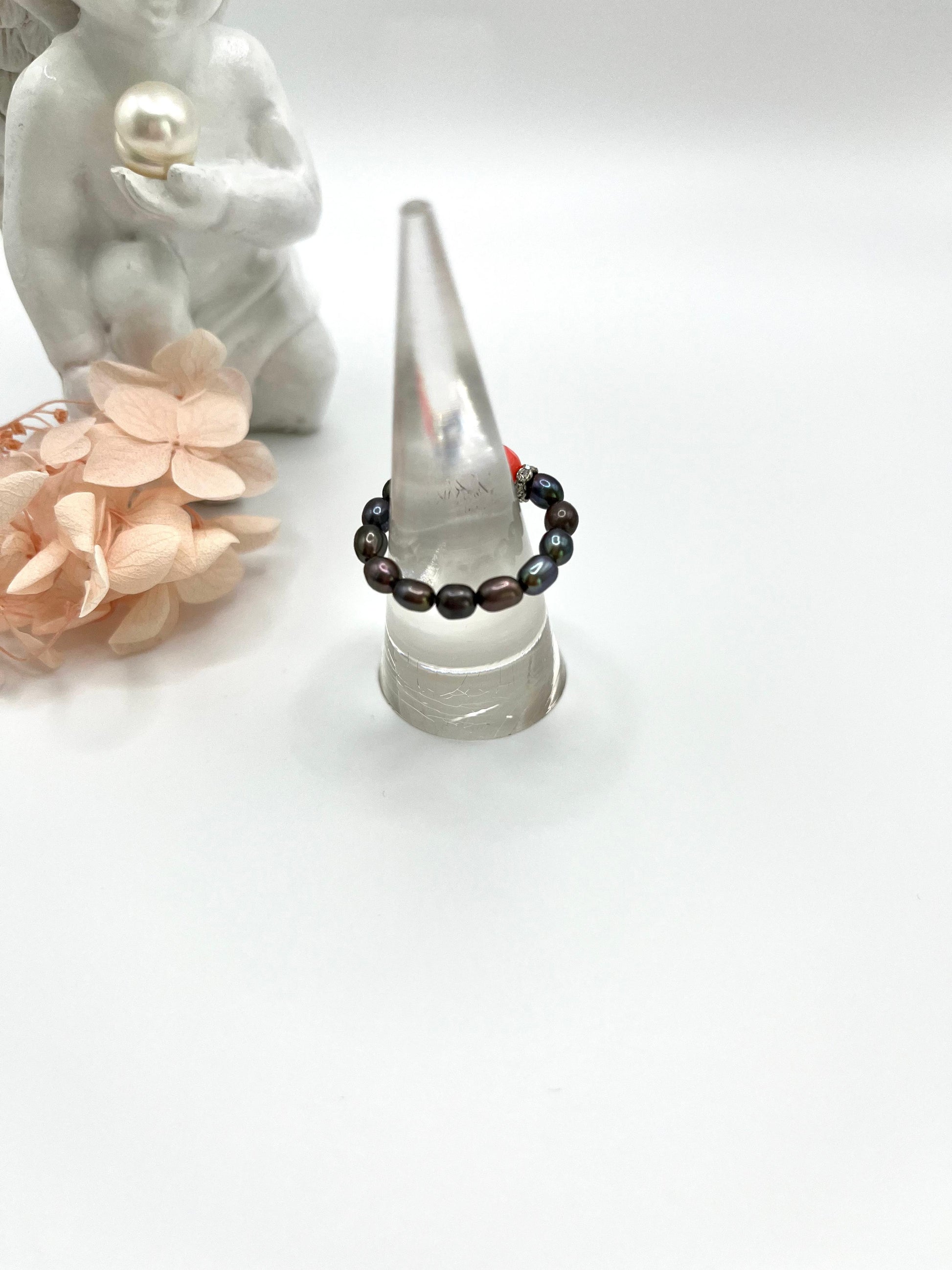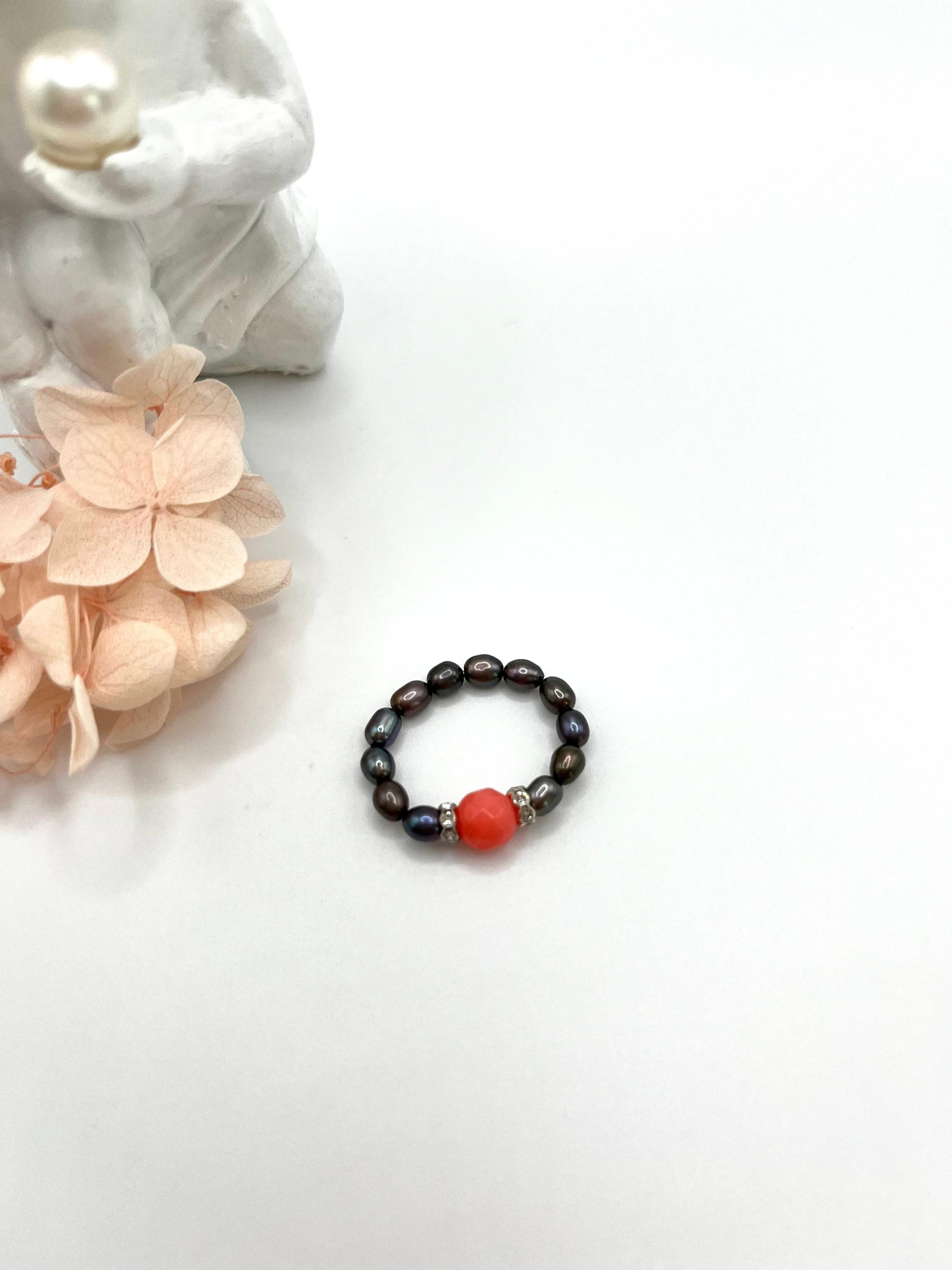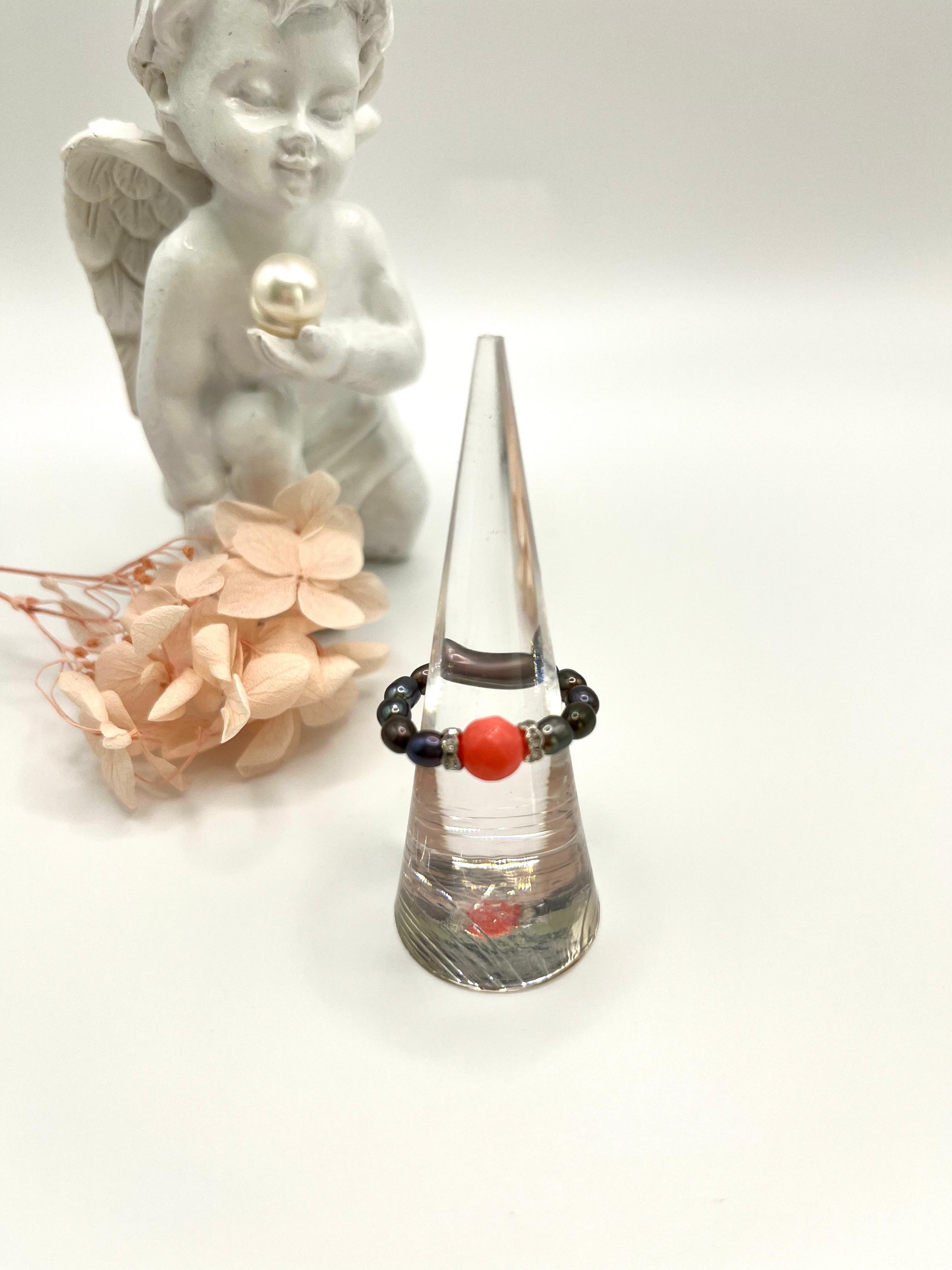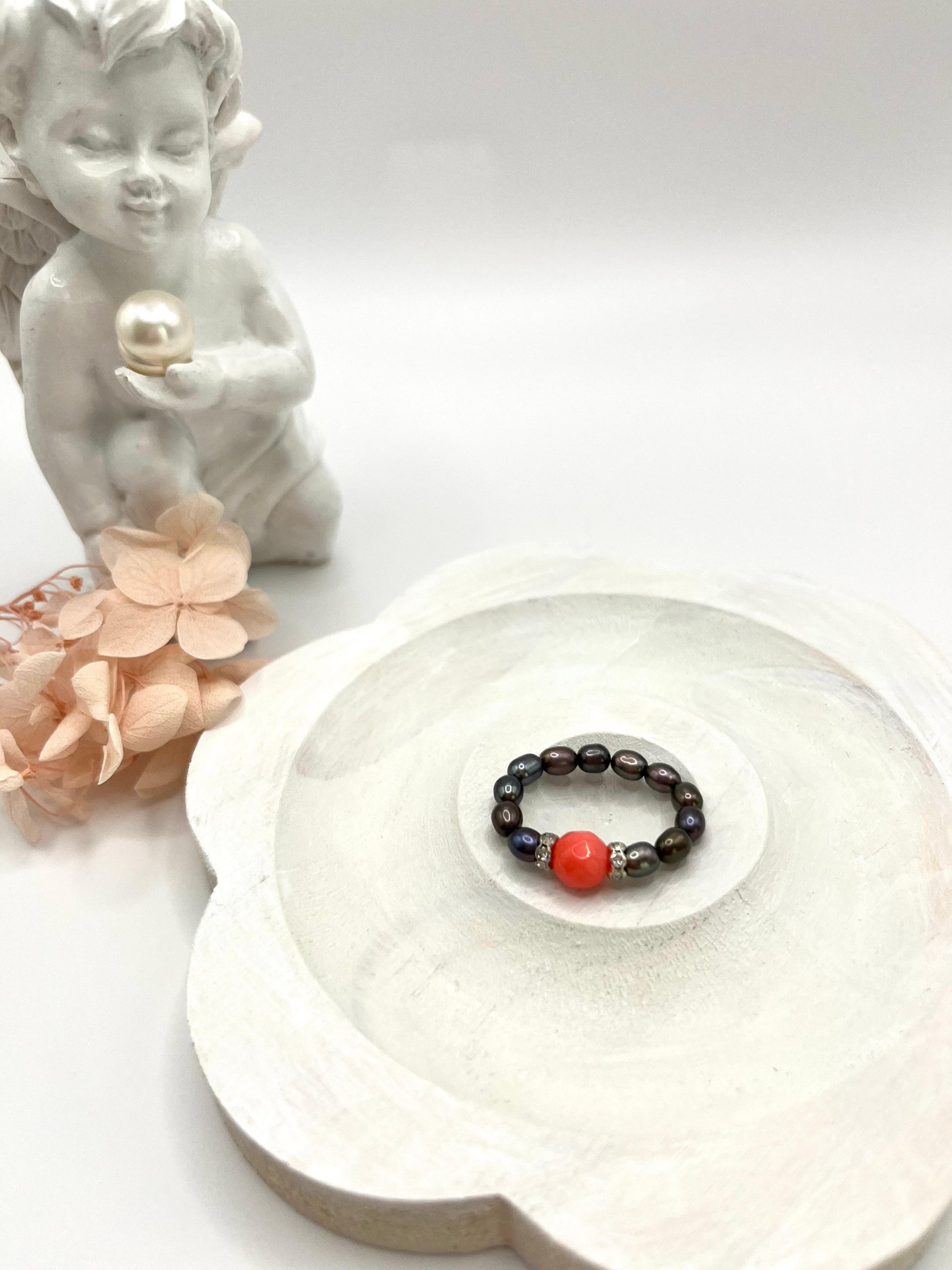 Perlenring mit Koralle