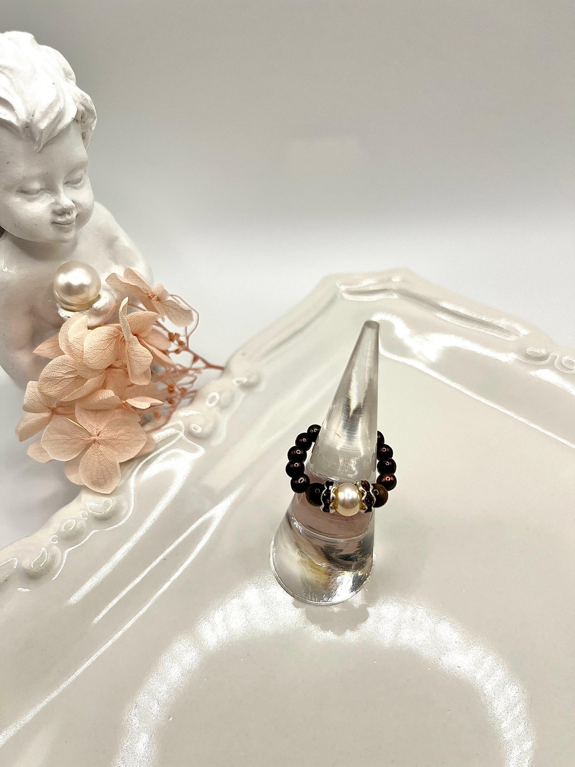 Zart eingefasst in feine Perlen entsteht ein dezenter Ring mit großer Wirkung.