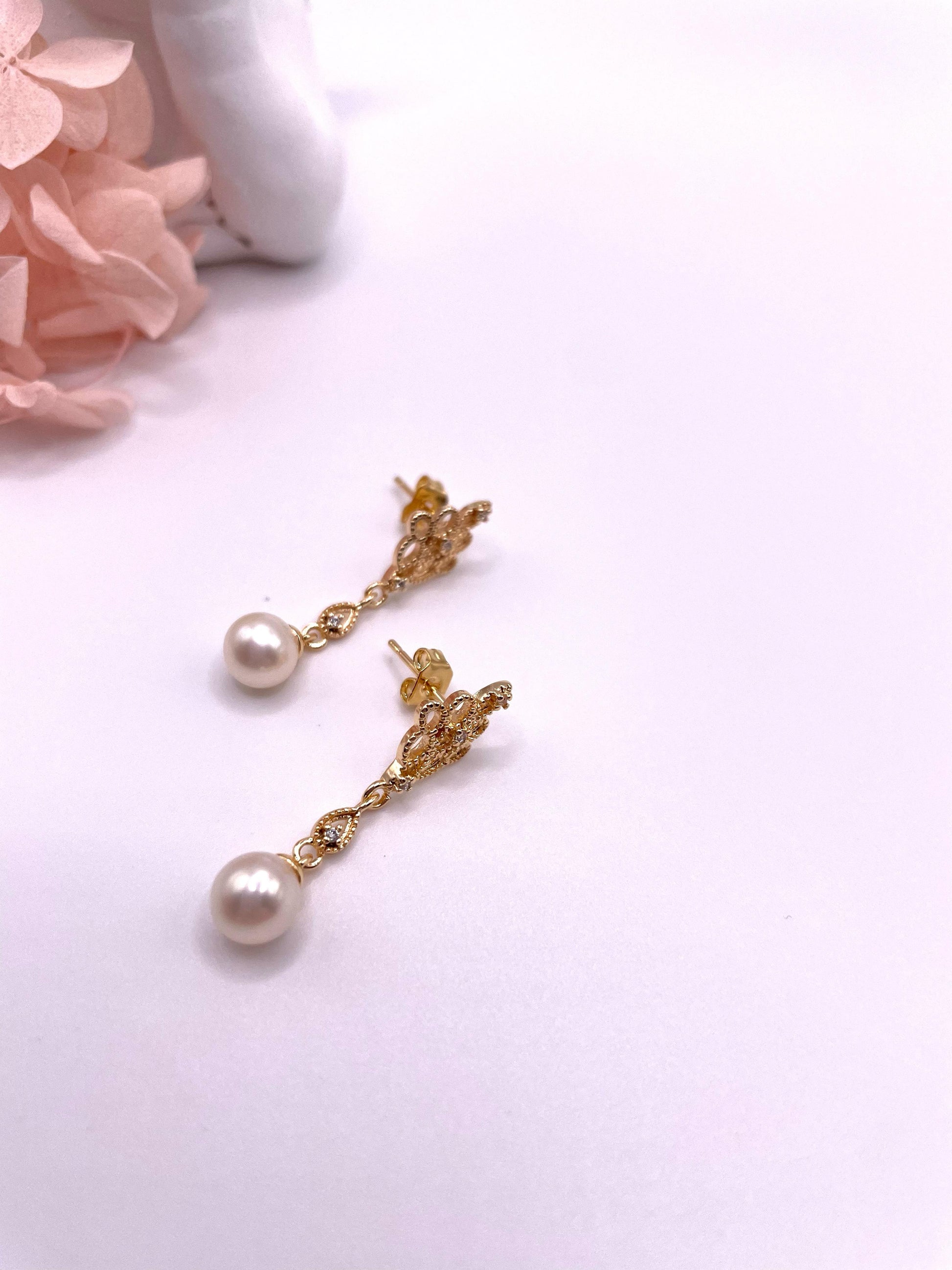 Zarte, filigrane Ohrstecker mit Süßwasserperlen