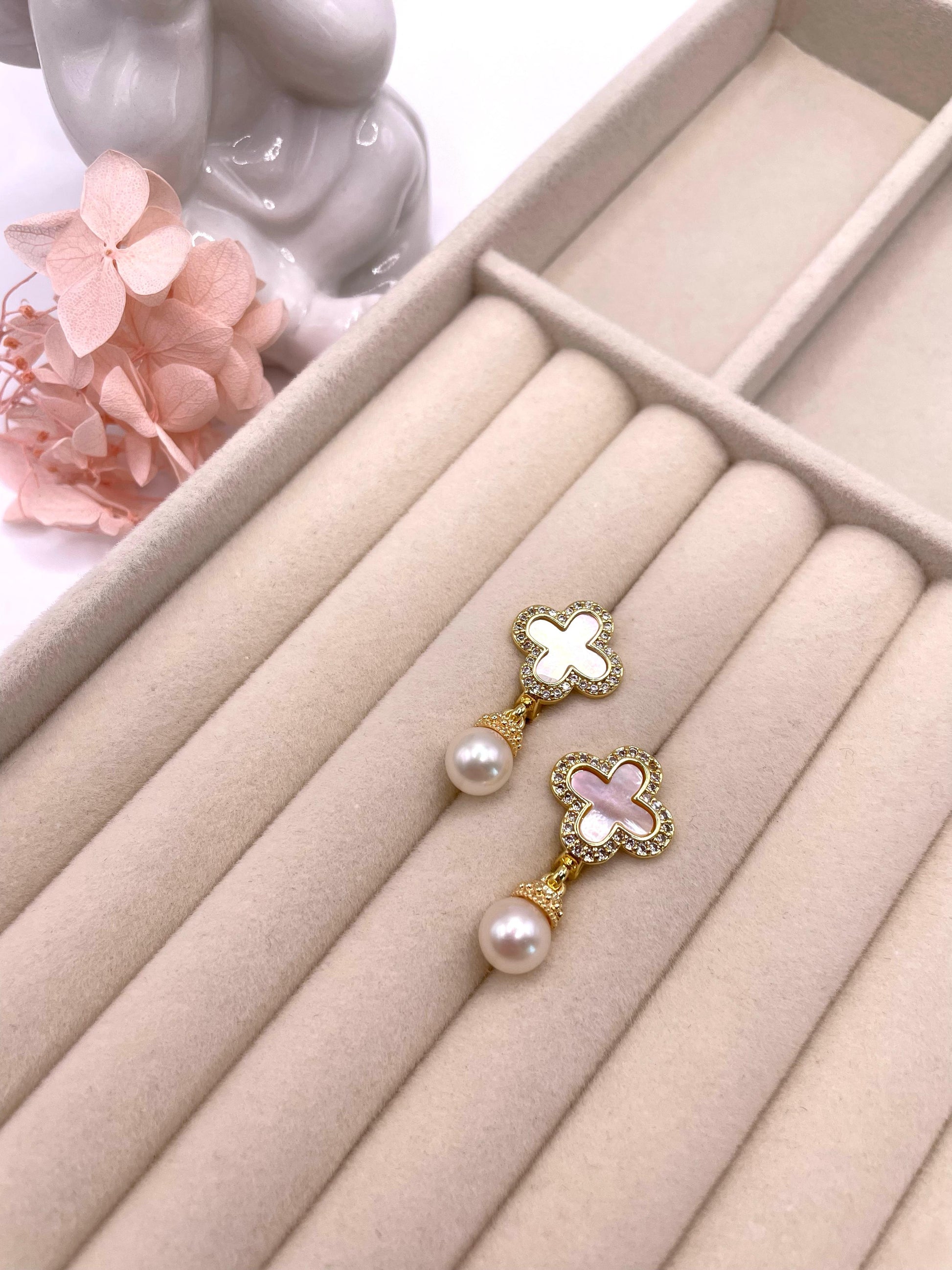 Zarte, wunderschöne Ohrringe, vergoldet, mit echten Süßwasserperlen